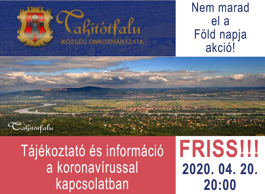 A kialakult világméretű járványügyi helyzetre tekintettel Tahitótfalu Község Önkormányzata megtartja az 50. nemzetközi és 30. hazai Föld Napja rendezvényt.